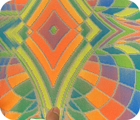 The weaving machine is suitable for all kinds of double warp fabric weaving and is widely used for the production of shoe vamp fabric, curtain fabric, suitcase fabric, labels, etc. The weaving machine has a Staubli jacquard with an Itema loom. It has automatic thermal cutting & thermoforming.